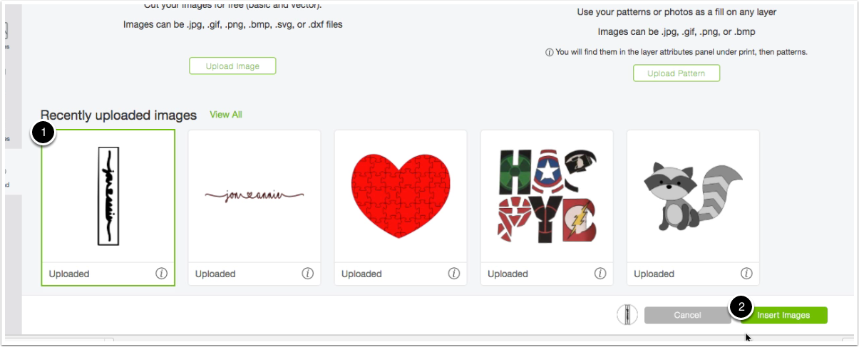 Make sure that the image is selected by the green border been present and then click on the green button that says insert images.