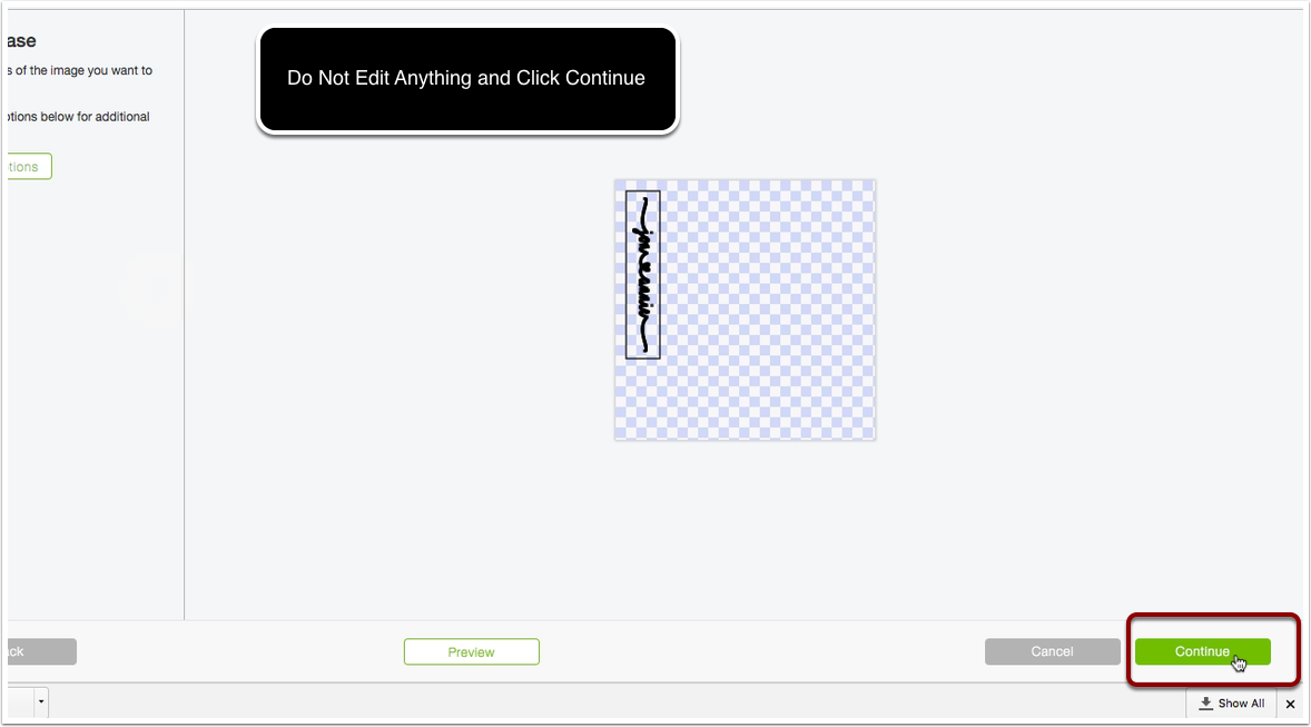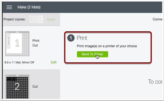 Now that were on the make it screen on the print mat we're going to need to click on the continue button. Keep in mind we are still not printing anything we just need to get that shadow effect on this text