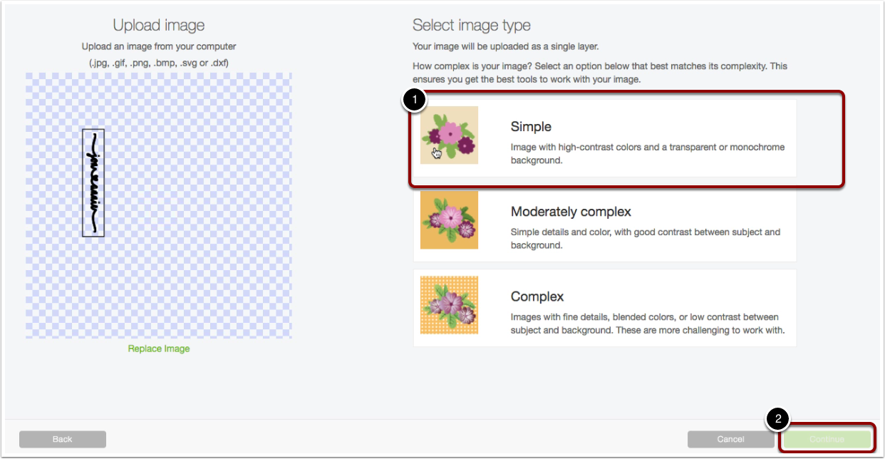You need to choose the image type to be simple and click on the continue button.